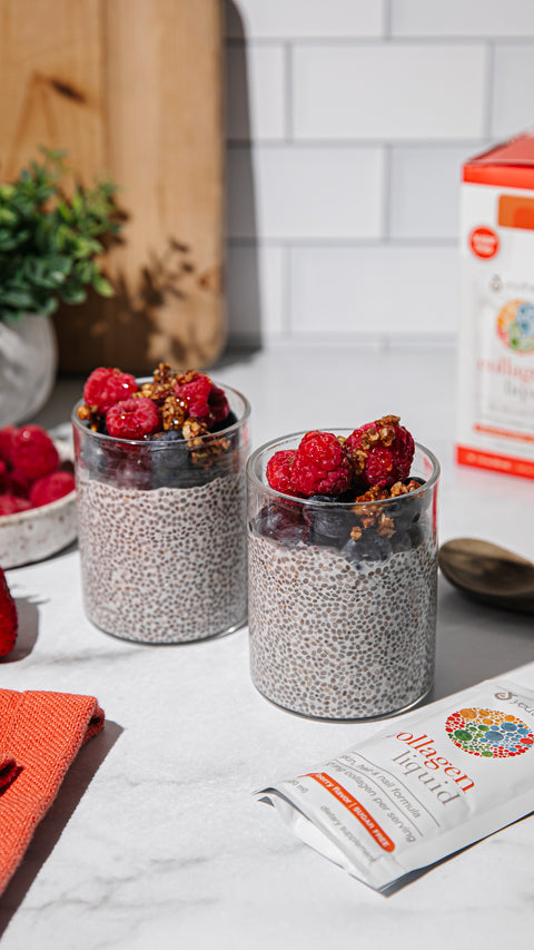 Treat yourself to the ultimate glow up with this easy and delicious vanilla chia pudding boosted with Youtheory® Collagen Liquid.
