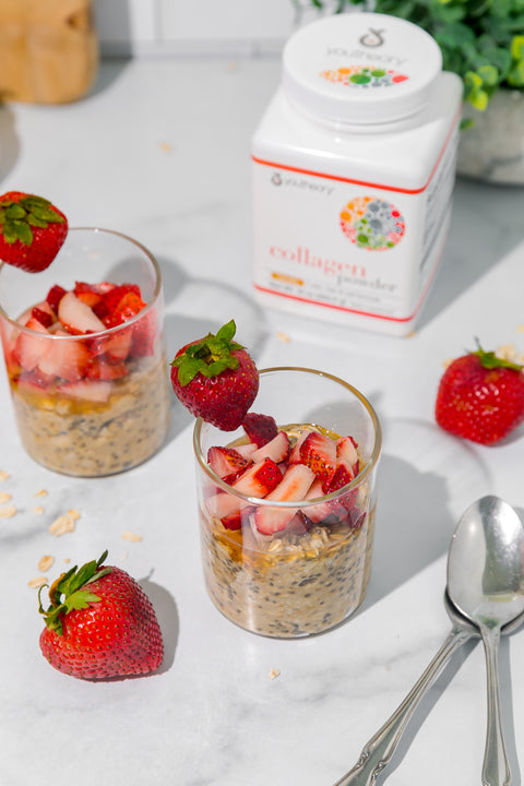 Collagen is a major structural protein in the human body (found in skin, joints, bones, blood vessels and connective tissues). As we age, collagen naturally breaks down and diminishes over time, leading to the early signs of aging.